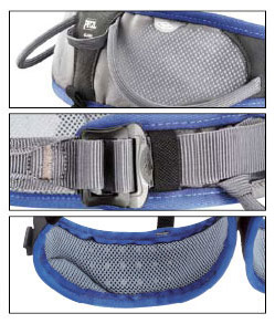 Se trata de un arnés muy práctico pero que también ha cuidado el diseño logrando así un atractivo modelo que incorpora dos portamateriales rígidos inclinados hacia adelante para tener a mano las cintas exprés y dos anillos flexibles en la parte trasera que no molestan cuando se lleva mochila. También incorpora 3 trabas especiales para poder incorporar el mosquetón CARITOOL, especial para el transporte de material.
